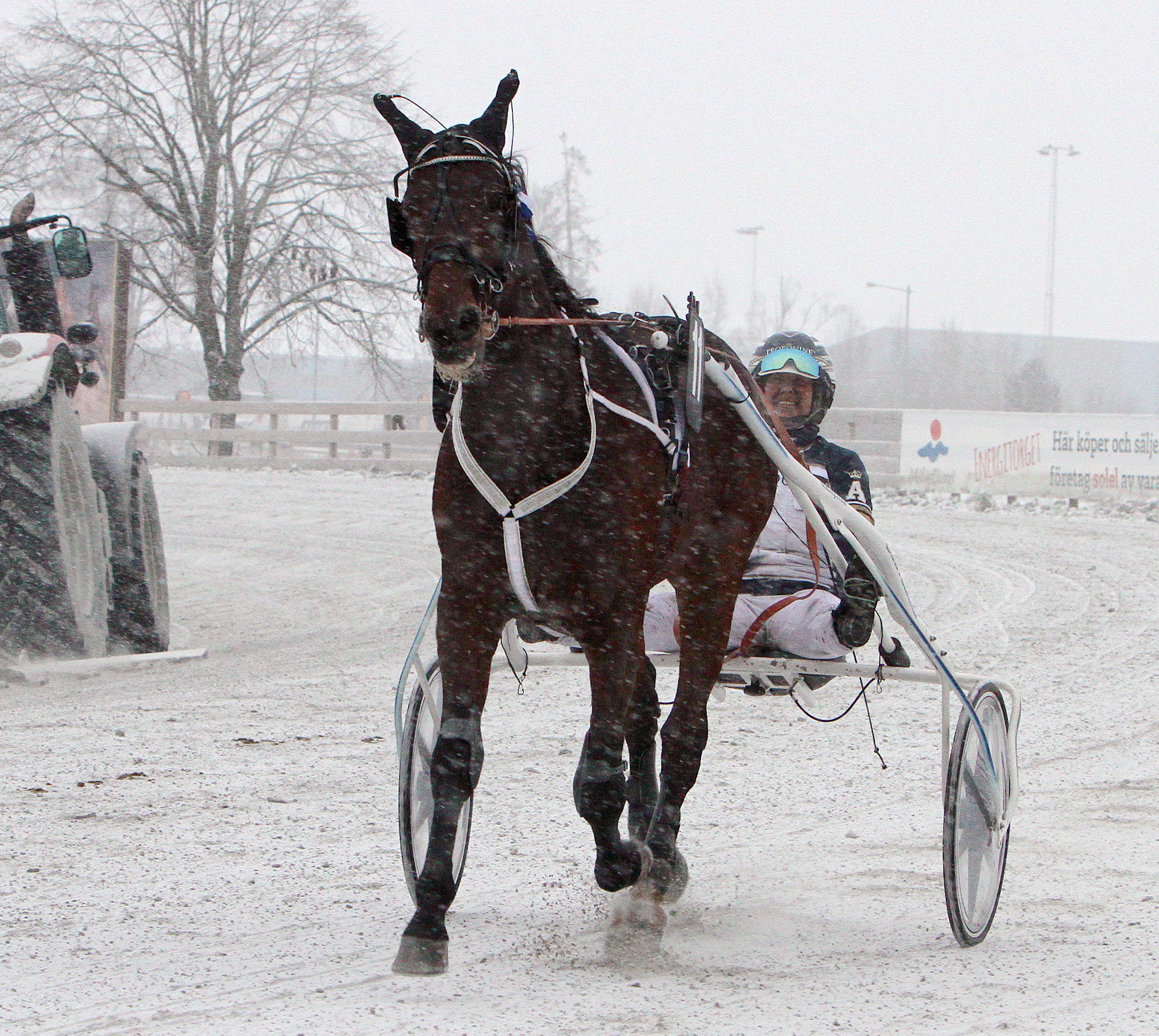 Nästa hemmaseger stod Sofia Adolfsson och Kaiser Southwind för, Sofia backade ner i kön och följde med i ryggar ut på bortre långsidan. Det var långt fram när man attackerade 300 meter från mål men via en snabb avslutning kunde man fånga in ledaren kort före mål. Tränar gör Hans Karlsson.