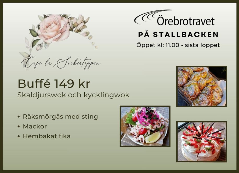 Café la Sockertoppen har öppet tävlingsdagar i stallcafét på stallbacken.