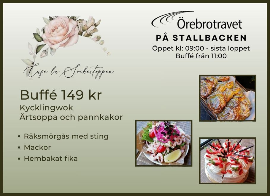 Välkommen till Restaurang Mållinjen, här serveras oftast olika sorters buffé. (har öppet V75-dagar).