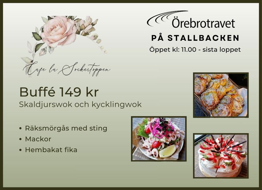 Välkommen till Restaurang Mållinjen, här serveras oftast olika sorters buffé. (har öppet V75-dagar).